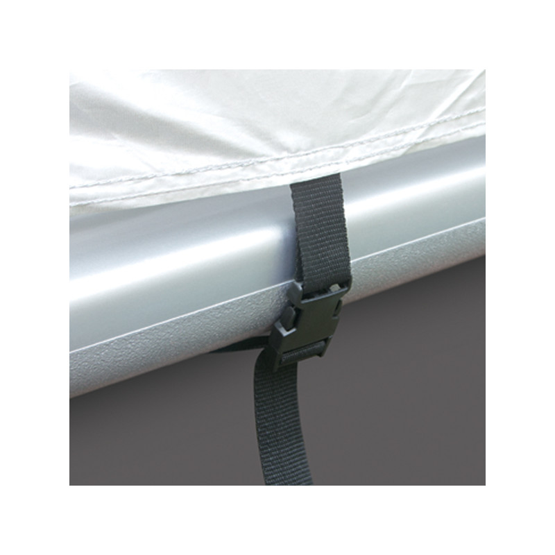 3- Säkerställer perfekt passform : Fäst de elastiska kanterna under ramen för att hålla presenningen på plats.